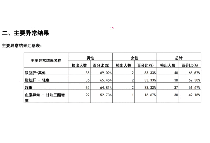4 月底,公司组织 182 名员工分别在浏阳、长沙县、长沙城区进行了 2025 年度健康体检。三份详实的团检报告数据令人警醒:脂肪肝、超重、血脂异常这三项指标牢牢占据异常结果的前三位。